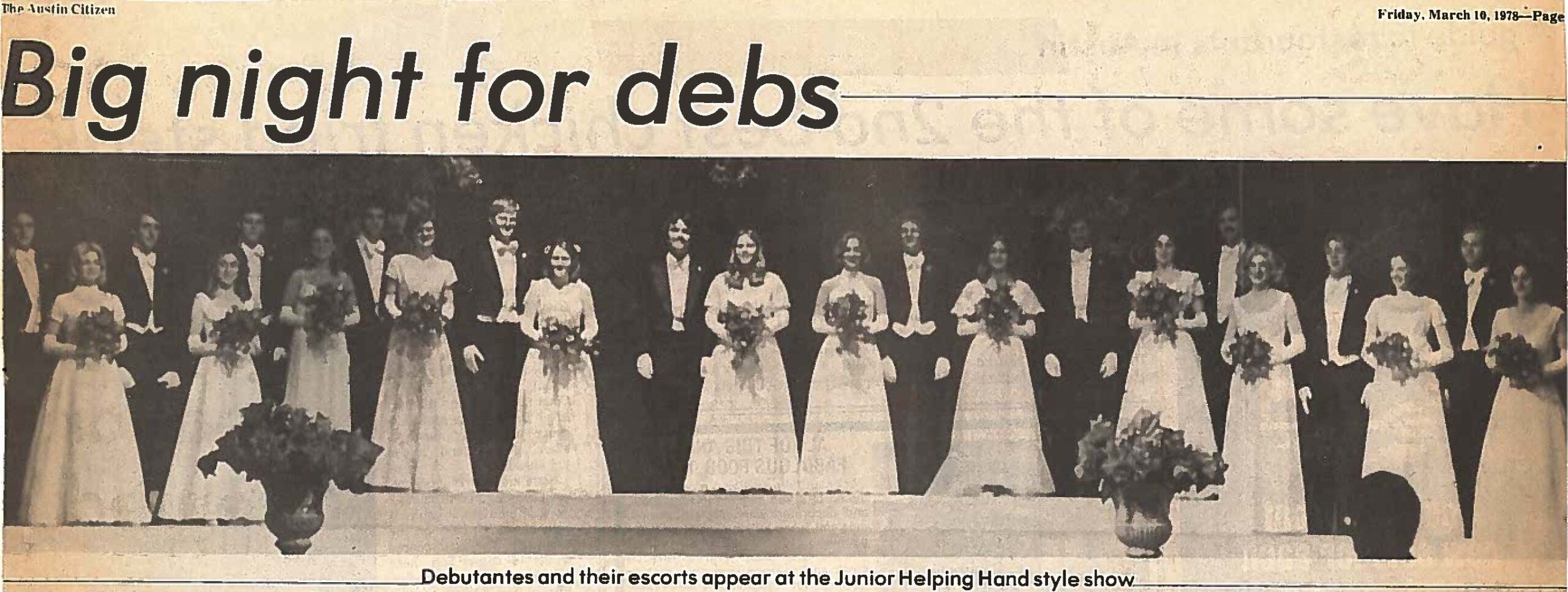 Over time, as orphans were placed in individual foster families rather than group homes, Helping Hand Home shifted its focus exclusively to healing severely abused and neglected children. As the children’s numbers and needs grew, the Helping Hand Society’s fundraising efforts grew as well. Style shows and luncheons were the mainstay of the Society’s early fundraising, leading to the first Helping Hand Debutante Presentation in 1939. In the more than eighty Presentation Galas that have followed, the Austin community has passed down the tradition of supporting the Home from one generation to another.